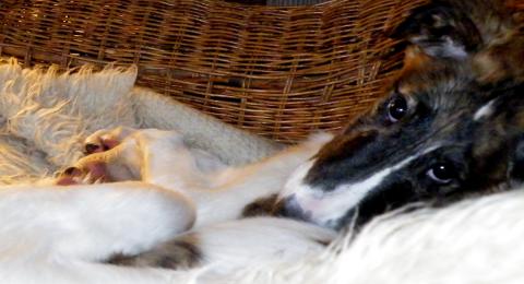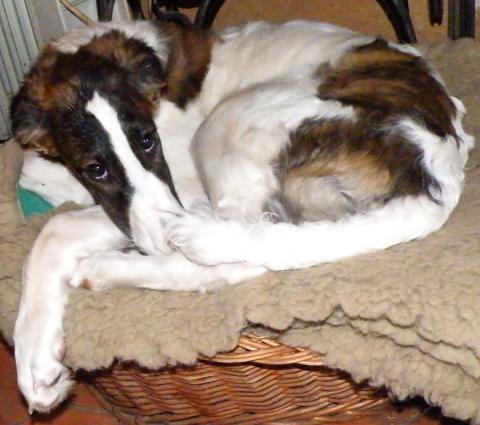 J'ai attendu 15 ans pour avoir le chien de mes rêves: un barzoï! C'est un amour à tous points de vue. Il s'entend parfaitement bien avec mes enfants (qui a dit que les barzoïs n'aimaient pas les enfants?) et la famille fonctionne comme une meute, dont je suis le chef! Sa place préférée: à côté du radiateur de la salle de bain, sur son matelas personnel, sinon dans la voiture, sur la banquette arrière entre les deux enfants... Je n'oublierai jamais le regard ébahi du gendarme découvrant mes trois lascars endormis les uns sur les autres sur la banquette arrière! Son meilleur ami: le lapin nain de la maison... qui joue beaucoup avec lui, le provoque sans cesse et n'hésite pas à piquer un petit galop derrière le barzoï.... A mourir de rire! Je n'attends qu'une chose: avoir un ou deux barzoïs de plus!