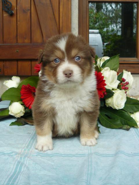 il y a 3 semaine j'ai eu un berger australien quand il avez 2 mois et maintenant il a 3 mois et déjà propre il aime les câlins il est joueur et aussi il s'entent bien avec mes autre animaux c'est super comme chien