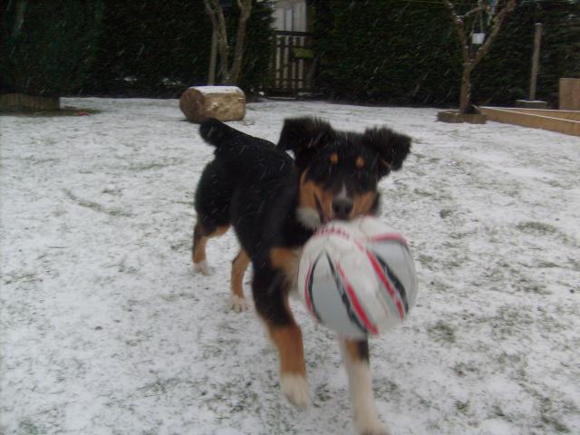 voila ma boule de nerf!!elle est adorable avec moi mais ne m'ecoute pas vraiment;elle craint plus les voix d'hommes!!moi elle me tire me saute dessus!!