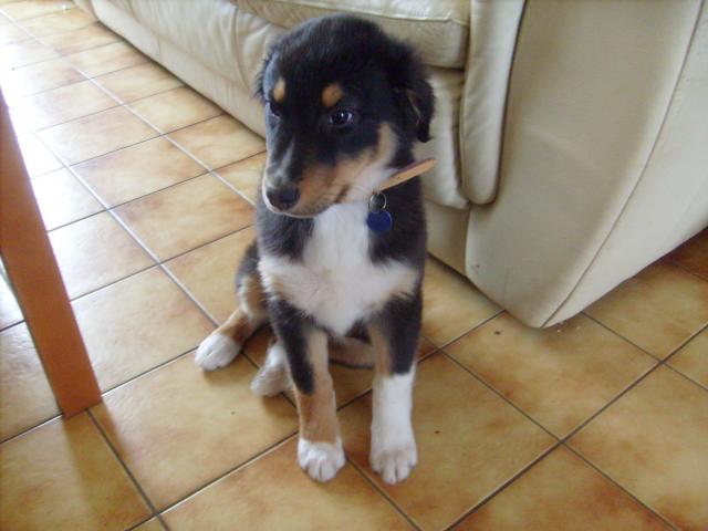 j'ai un berger australien mâle de 7 mois, il est très actif. Heureusement il a de l'espace car nous vivons en ferme. je fais de l'éducation en club et nous aimerions essayer de le dresser au troupeau. J'ai fait des essais sur un troupeau de moutons et il a plutôt bien réagit, il nous reste à canaliser sa fougue, voici une photo de lui à 5 mois.