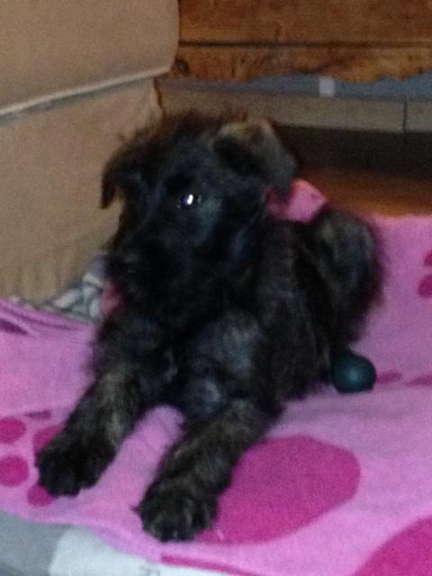 Nous avons été la chercher aujourd'hui 06/12, beau cadeau de Saint Nicolas. Elle vient d'un excellent élevage de gens passionnés et passionnants. Après une seule soirée elle se révèle déjà comme un chien très intelligent, affectueux et docile. Elle fait déjà partie intégrante de la famille, tout en restant à sa place..