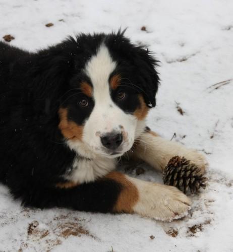 Voilà notre Calice, une adorable Bernoise pleine de vie...