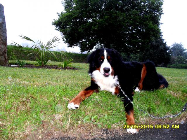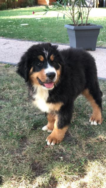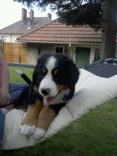 voici mon boubou de 4mois il fait notre bonheur ,je tien a preciser attention ce sont des mollose!! pas des caniches! donc avant de faire sont choix sacher que tout chiots devient grand et le bernois...50kilos d amour a donne se doit davoir reflexion et un minimum d education!.....imaginer un boubou de 50kilos voulant dire bonjour a votre voisine de 75ans!aye!