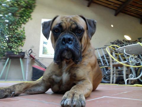 Bonjour. C'est ma première expérience avec un Boxer et nous l'avons depuis Avril 2008. Je voulais un chien comme cadeau d'anniversaire qui était en Mars et je suis allé le chercher début avril. Il a maintenant 2 ans 1/2 et mon Dieu, comme je ne le regrette pas du tout. Ce sont des chiens magnifiques, affectueux, drôles et sociables pour autant qu'on les sociabilisent jeunes. Joueurs et aimant les gens Tchiko est une perle pour nous. Parfois, mon coeur peine à penser qu'un jour...il nous quittera et j'aime autant mieux ne pas y penser. Ce sera probablement le dernier chien que nous aurons de toute façon, car après lui nous commençerons à être plus vieux pour recommencer avec un Boxer aussi enjoué ! Si il vit un autre bon 10 ans...ben j'aurai 60 ans moi ! Mes souvenirs d'avoir eue un Boxer resteront gravés à jamais et mon amour pour lui aussi.