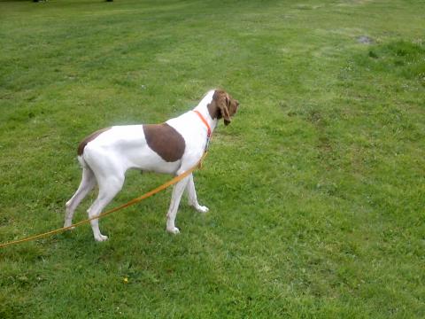Ektor (à 6 mois sur les photos) a tout pris du braque alors que sa mère est une pure Kothal. Braque de type indéfini, chien adorable et affectueux, avec la turbulence de la jeunesse, c'est un pot de colle qui ne me lâche pas d'une semelle. Premiers tests sur perdreaux et faisans sont tout justes fabuleux. Il a pris l'émanation à 50 m, a ramassé l'oiseau et l'a rapporté. Un peu de fermeté dans le dressage est nécessaire, car il peut être cabochard à ses moments. Mais ce chien est un pur bonheur
