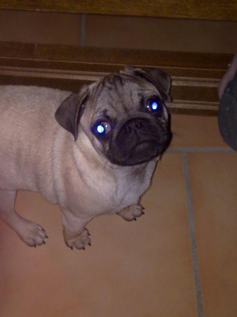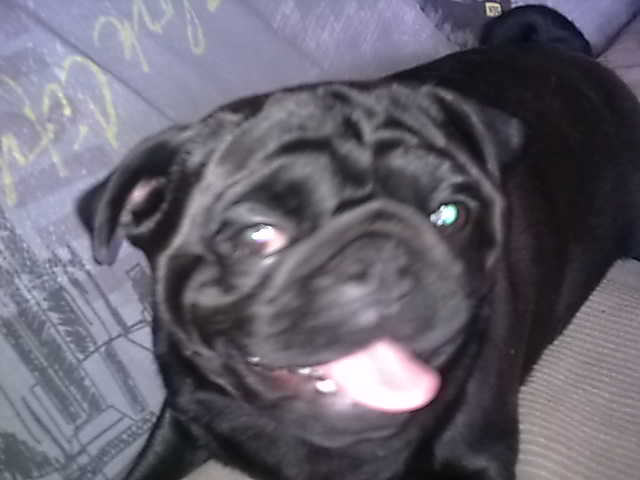 voici mon petit carlin elle s'appelle shakira elle a 1ans8mois ses 1 chien tres gormand mes super amitieux. se qui fai leur charme ses leur ronfleman et leur mimic... 1conseil ne pas trop leur donné a mangé et ne pas les prendre par la peau du coup ses tres mauvais pour leur yeux...