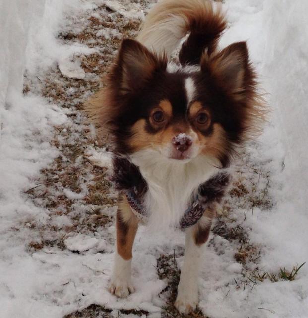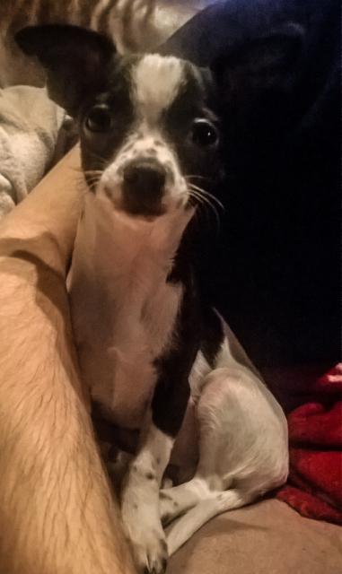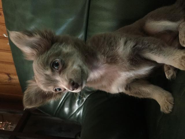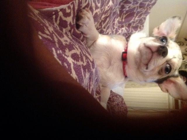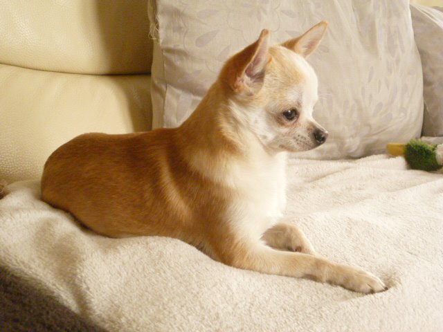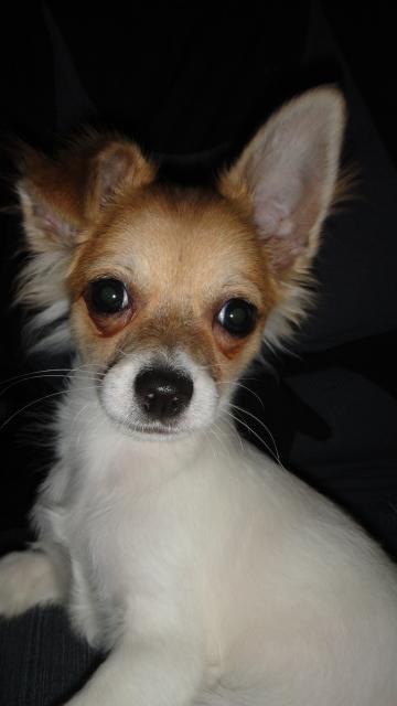 Je vous présente notre petit amour de chihuahua, il n'a pas la taille conventionnelle, il fait 4kg et il a 16 mois, je ne sais pas s'il est croisé, un de ses parents est papillon, l'autre non mais il est très intelligent et nous apporte plein d'amour que nous lui rendons bien !!!