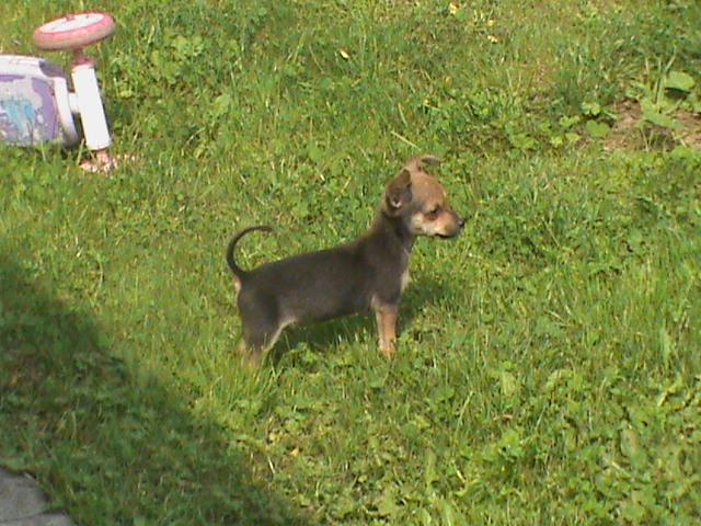 j'ai des doutes sur les origines de votre chien , il existe des particuliers qui reproduise des chihuahua a poils court avec des pinscher apres l importance et que votre chien et en bonne santé de plusil est tres beau