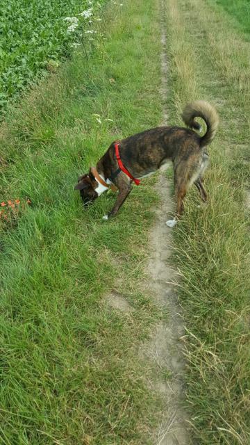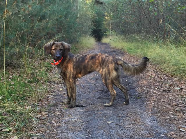 je vous présente Taïko, arrivé de Serbie en mai dernier.. je pense de plus en plus qu'il a du cursinu : robe bringée charbonnée, queue enroulée sur le dos quand il marche, pattes en forme de "pattes de lapin", tempérament très chasseur et têtu.. qu'en pensez vous ?
