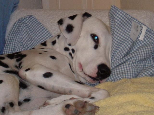 Non, on ne tuera pas un dalmatien qu'il est 1 ou 2 yeux bleus. Simplement, il n'aura pas un pedigree validé et ne sera pas apte à reproduire. L'oeil bleu est une caractéristique indésirable au même titre que la surdité totale ou le patch (tâche présente à la naissance). Le but est de conserver le modèle physique et psychologique qui nous plait tant.