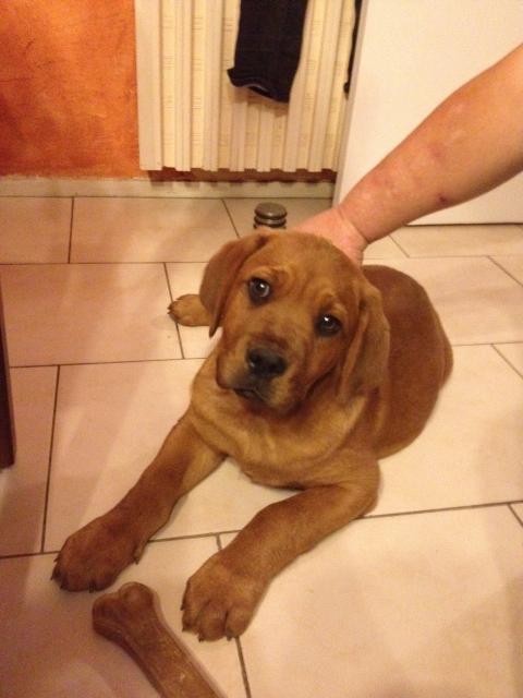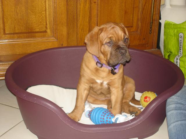 nous avons eu une dogue de bordeaux que nous avons aimé à al folie!!elle nous a quitté il y a 2 ans et avons eu bcp de mal a s'en remettre!!surtout pour mon epoux pour qui elle avait un attachement incroyable!!elle était veritablement amoureuse de son maitre!!elle aurait donné sa vie pour lui alors inutile de vous dire comme sa perte a été cruelle!!on parle toujours d'elle,elle était un membre a part entiére de la famille!On s'était juré que plus jamais on aura un autre dogue,trop difficile quand ils s'en vont!!et a nos yeux aucun chien ne pouvait étre à la hauteur de notre chienne!!et voilà qu'aujourd'hui nous venons d'accueillir une petite dogue de bordeaux agée de 2 mois!!elle est déjà incroyable!!elle est ici comme chez elle!!tranquille la nénette!!fait déjà preuve de fidelité et une fois de plus elle est tombée sous le charme de mon époux !!dort sur lui,le suit,le léche...!!comment voulez vous que je ne suis pas jalouse moi!!!!vraiment on doit étre un peu trop gaga avec nos chien!!