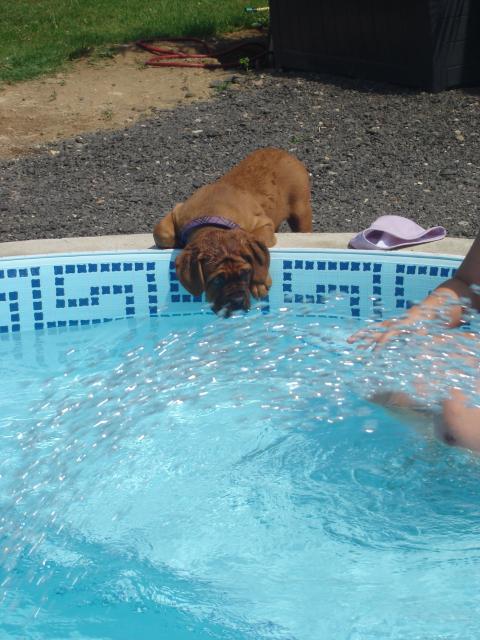 Voici Boris mon superbe Dogue de Bordeaux!!! C'est le meilleur chien au monde. Obéissant, gentil et de garde. Un chien rêvé! Il a présentement 7 mois et pèse 34 kilos. Est ce que cest dans les standard de poids?