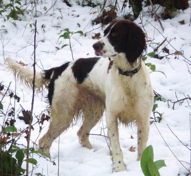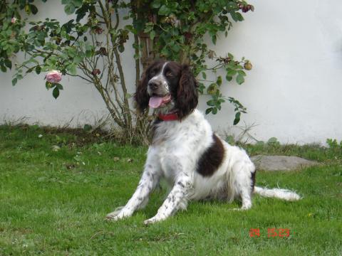 Voici mon épagneul francais agé de 5 ans sur la photo et maintenant 6 ans . Il s'appelle Foyd et c'est un super bon chien . Je ne l'utilise pas pour la chasse car je ne suis pas chasseur mais j'adore aller marcher avec lui dans les champs et je sent qu'il essais toujours de trouver des bestioles avec son museau !o) C'est un chien très enjoué qui sait devenir calme avec le temps ( lors de la sieste hehe ) Il est très curieux de nature et aime beaucoup ceux qui l'entoure . Il n'a aucune malice donc avec les enfant c'est probablement un des meilleurs chiens possible à mon avis . Il se sauvent dès qu'il en a envie pour se trouver des amis ... Super chien et très intelligent 10/10 . Je l'aime beaucoup .
