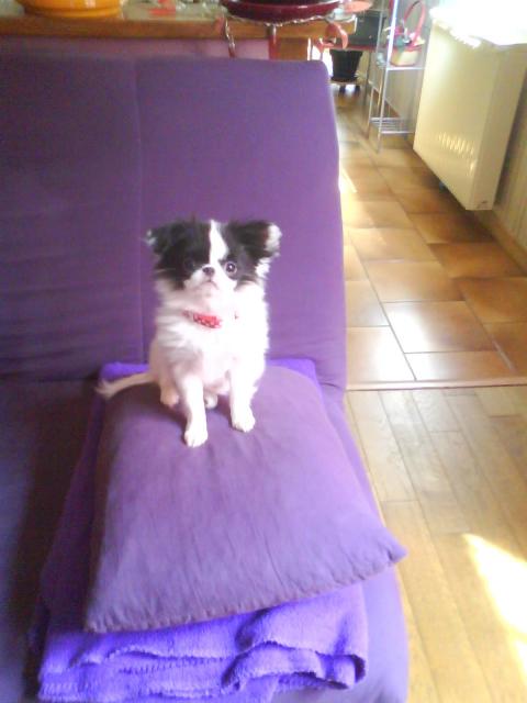moi aussi j'ai un petit épagneul japonais GENGIS KHAN qui aura 1an le 23 mai 2012, c'est un véritable petit amour il ne me quitte jamais me suit partout c'est un membre à part entière de notre famille nous l'aimons très fort ; en ce moment; il a des problèmes de rotule au niveau de la patte arrière gauche, est sous antibiotique depuis lundi.