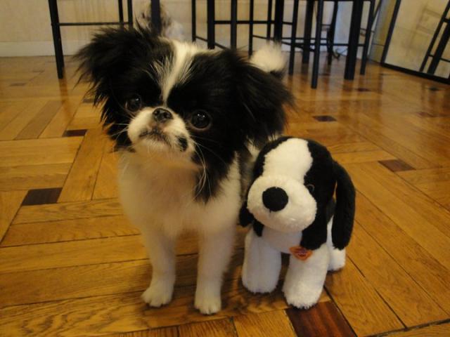 J'ai l'immense joie de vous présenter Cooky, l'Epagneul japonais, adopté à la SPA le 30 avril 2013. Il a 3 ans. Il a fallu 10 minutes à Ruby, l'Irish Terrier, lui aussi adopté à la SPA en 2010 (il a 7 ans maintenant) pour faire la fête à Cooky. Ils sont inséparables et jouent comme des foufous....