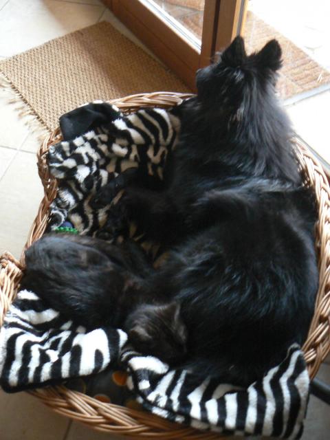 message 1495 pas passé ?: Urco, notre groenendael mâle de 15 ans et 3 mois ce 7 février,est né en novembre 1996 avec un petit souffle au coeur;à fait des crises d'épilepsie pendant quelques années; actuellement il est soigné pour ces 2 maux, mais avec l'âge, il est devenu sourd, attrappe la cataracte aux yeux mais n'est pas aveugle, et "souffre" de faiblesse aux pattes arrières; sa nourriture se compose de blancs de poulets bouillis+légumes réchauffés+ riz+ un peu d'huile d'olive pour garder son poil luisant & souple, sans compter quelques "extras";jamais de toilettage mais brossage à la maison mais 4 promenades quotidiennes; son caractère dominant à pratiquement disparu, probablement dû à ses handicaps, mais que de joie il continue à nous apporter dans la famille; il est probablement le dernier d'une nichée se composant de 7 mâles & 1 femelle issus de " champions" avec pedigree, mais nous ne l'avons jamais fait participer ni entraîner pour des concours.
