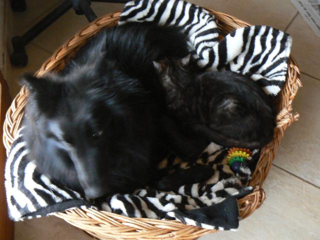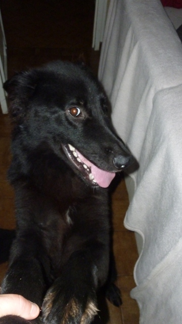 voilà 3 jours qu'elle est a la maison , elle est méconnaissable par rapport a vendredi , derrière son grillage au refuge .