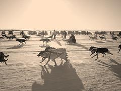 excusez-moi de contredire les origines du husky sibérien, mais comme son nom l'indique, ce chien vient de la province de sibérie. Ils ont été introduit en alaska par Seppala qui était un musher. Grâce à ces chiens, qui étaient la risée de tous les mushers à cause de leur petite taille, les autres chiens(malamute, groenlandais, samoyèdes, spitz etc....) étaient des chiens b eaucoup plus massifs, très résistants et nos huskies étaient bien légers à côté d'eux. La ville de Nome a été atteinte par la diphtérie (je crois que c'était en 1926) il fallait leur porter des vaccins. Plusieurs attelages sont partis, mais aucun n'a atteint cette ville. Seppala s'est alors présenté pour proposer ses services. Eclats de rire général parmi la population. La température oscillait entre -50 à -56. Seppala parti avec son précieux chargement, il s'attacha au traîneau...... et arriva à Nome.