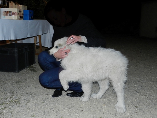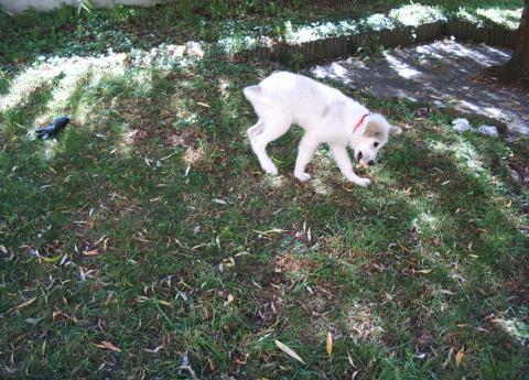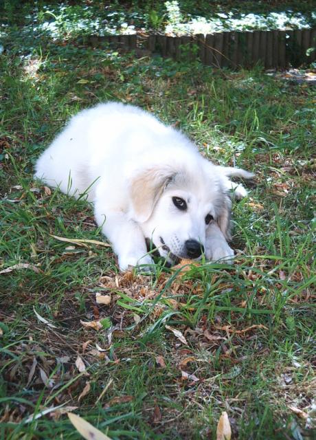 Notre Pyrénée a 18 mois. Elle nous apporte beaucoup de satisfaction. C'est une aboyeuse qui garde son domaine. Elle demande beaucoup d'attention, de jeux pour éviter d'avoir les voisins sur le dos.