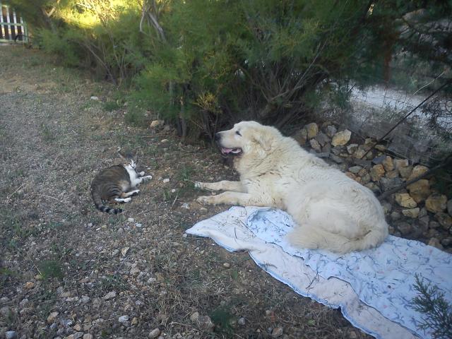 Je vous présente mes deux gros Montagnes des Pyrennés. Celle à votre gauche c'est mon adorable Maggy agée de 2 ans et juste à côté d'elle c'est mon gros bébé Patou âgé de 3 ans. Ils ne sont pas de la même porté.