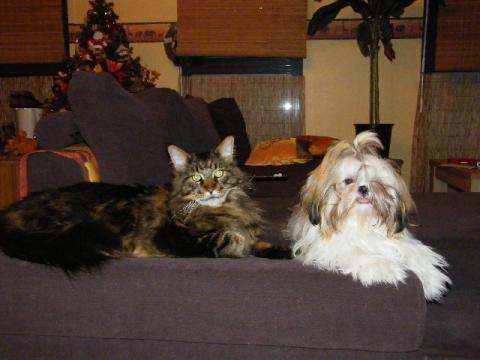 Les Shih-Tzu sont des amours de chiens, en général très amis avec les chats...La mienne, Lizzie, presque 13 ans 1/2, en est gaga....Elle est encore très gaie et très joueuse...Je vis dès à présent avec l'angoisse de son départ, même si j'essaie de ne pas trop y penser et de profiter de sa présence le plus intensément possible...