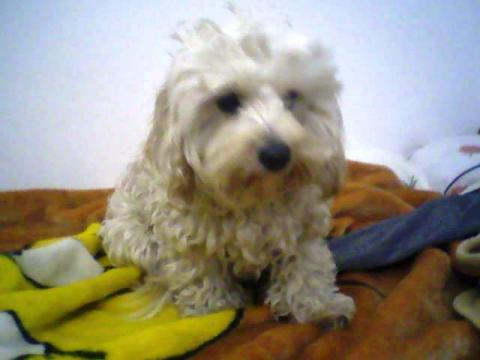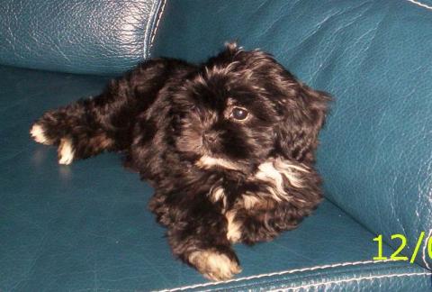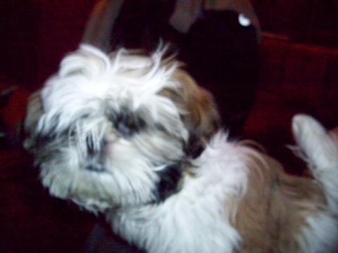 Je vous présente mon shih tzu "Caloo", il a un an 1/2, c'est un chien adorable, câlin, joueur... il aime aussi moridller les bas de pantanlons, les chaussettes... Un peu têtu mais obéissant !!!