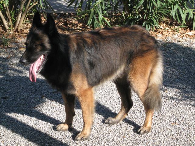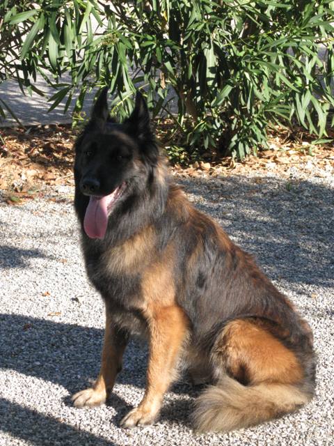 Moi aussi j'ai un Tervueren, que j'ai adopté cause maltraitance de son ancien maître. C'est un chien exceptionnel très affectueux et sportif, un vrai berger car il est capable de rabattre mon deuxième chien qui est un bulldog américain ; tous les deux s'entendent très bien. Je n'ai fait que 4 séances d'obéissance à l'ODAC pour Falco mais il obéit aux claquement de doigt, je peux le faire poser (assis) et m'éloigner de 50 mètres il ne bouge que quand je le rappelle.