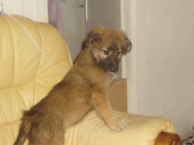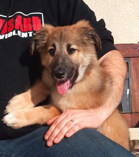 Craintif qd il a quitté sa mère , nous l'emmenions avec sa longe parmi d'autres chiens , ou dans le caddy tt petit ( tjrs conseils du véto ) Male dominant , il n'était agressif qu'avec un autre male dominant .