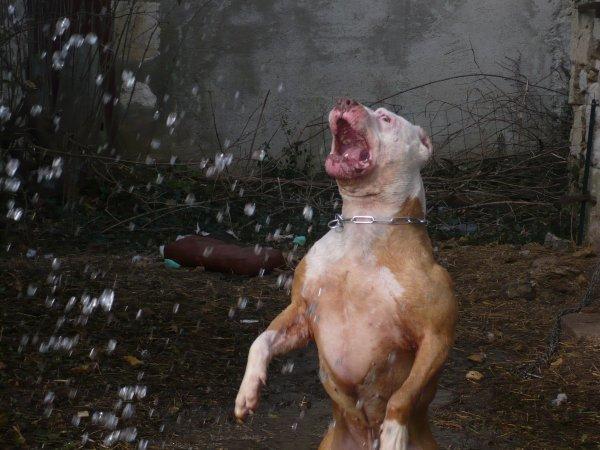 Notre chien a actuellement 1 ans et 2 mois et de couleur "rouge" issu d'un père champion d'Europe des concours qui ont eu lieu en Italie, et d'une mère de couleur bleu,