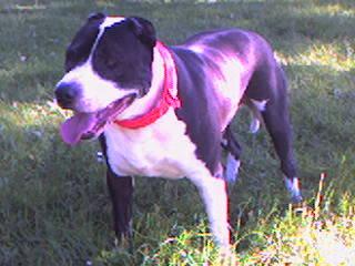 Beau chien , musclé , qui eloigne certainement les intrus par son aspect et son impression de puissance