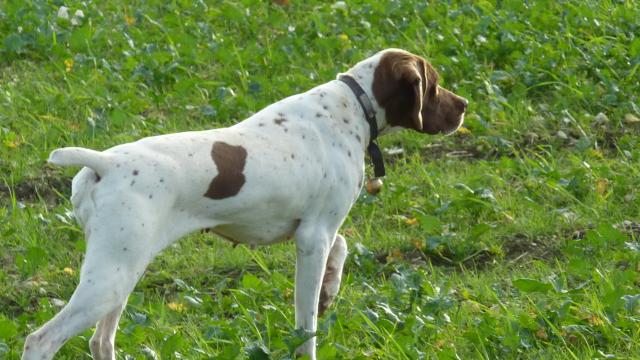 Ektor (à 6 mois sur les photos) a tout pris du braque alors que sa mère est une pure Kothal. Braque de type indéfini, chien adorable et affectueux, avec la turbulence de la jeunesse, c'est un pot de colle qui ne me lâche pas d'une semelle. Premiers tests sur perdreaux et faisans sont tout justes fabuleux. Il a pris l'émanation à 50 m, a ramassé l'oiseau et l'a rapporté. Un peu de fermeté dans le dressage est nécessaire, car il peut être cabochard à ses moments. Mais ce chien est un pur bonheur