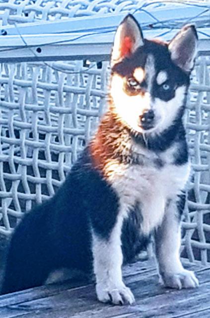 mon husky a 6 ans et demi il a les yeux vairon ou hétérochrome et il s'appelle Farouk,il est très gentil (c'est une vrai crème) et aime beaucoup les enfants car il est très sociable