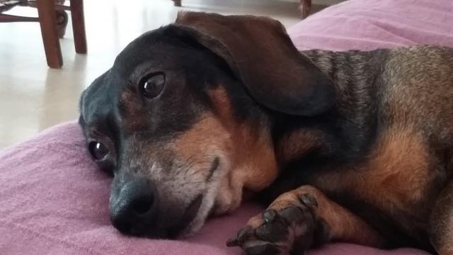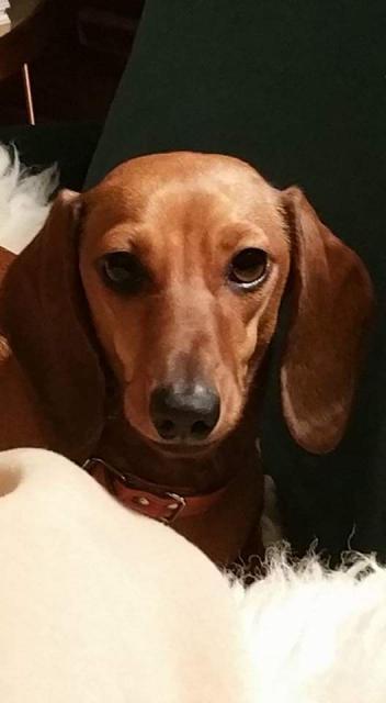 Gypsy, teckel mâle de 8 ans. Un compagnon très fidèle qui me suit partout. Une vraie crème ce toutou. Très jaloux et possessif cependant, et un sale caractère. Mais sinon ça va. Je peux l'emmener en forêt sans laisse, il ne part pas. N'a jamais rien cassé hors mi ses jouets ou sa couverture. Quand il a envie de faire ses besoins et qu'il ne peut pas sortir assez rapidement il se met à paniquer jusqu’à se faire vomir. Au cas ou il lui arrive de les faires à l'intérieur (très, très rare) il est géné et se cache. Un très bon compagnon et je croix même qu'il comprend tout ce que je lui dit.